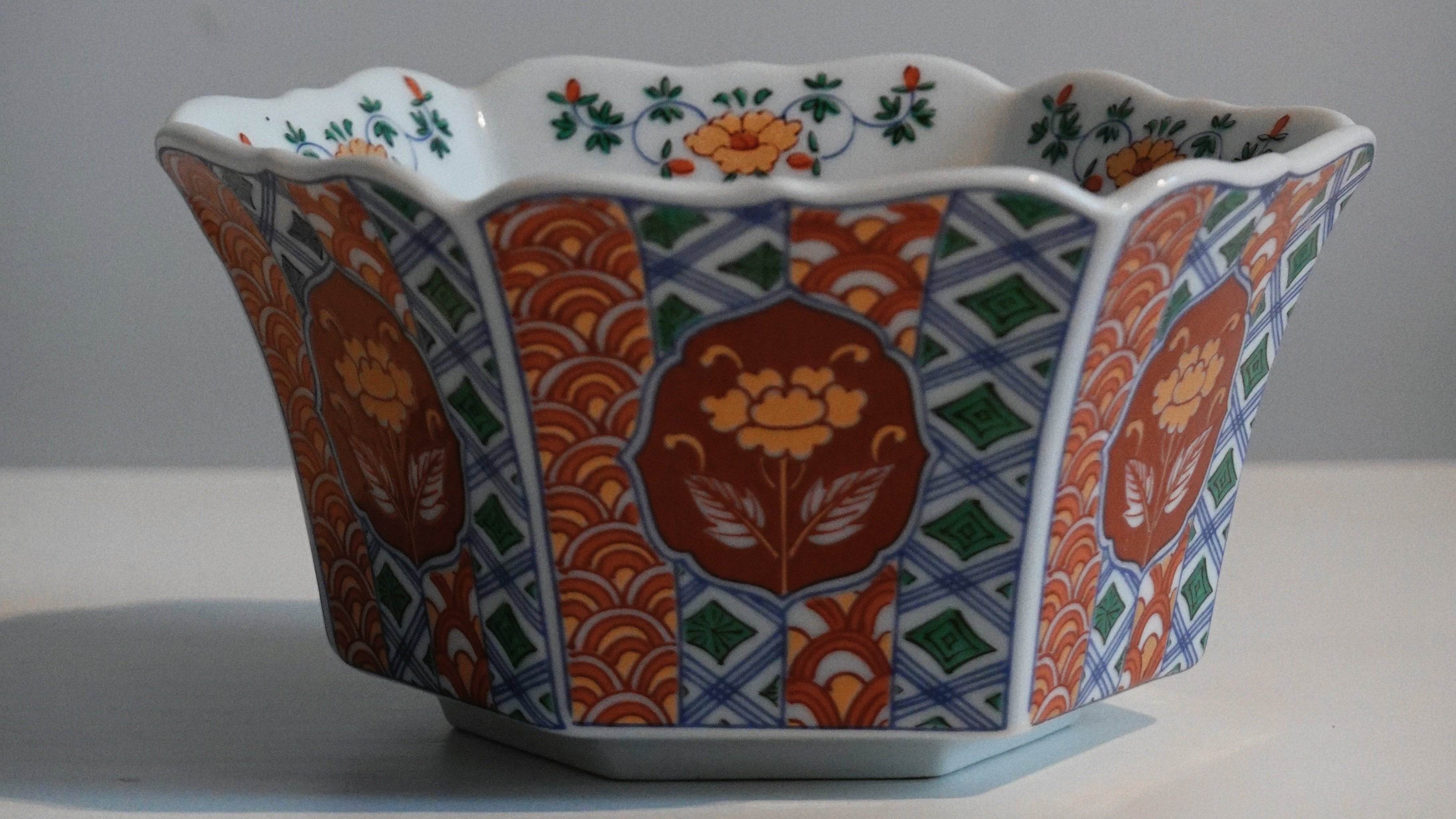 Japanese Imari Red Floral Pattern Hexagonal Bowl, Medium 12 cm